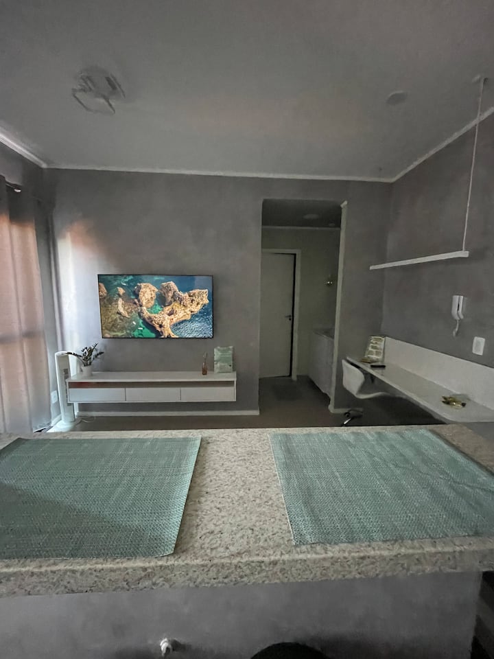Ubicado en el corazón de Campinas, cerca de los principales lugares de eventos y convenciones, este acogedor y conectado estudio ha sido decorado delicadamente para que te relajes y disfrutes de lo mejor de tu estancia en un barrio seguro y muy bien ubicado. 🏠💚