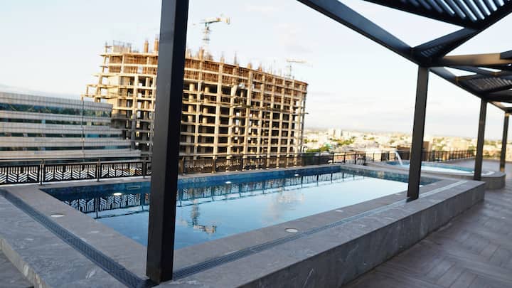 Moderno 1BHK | Cine|Estacionamiento|Piscina+WiFi y espacio de trabajo