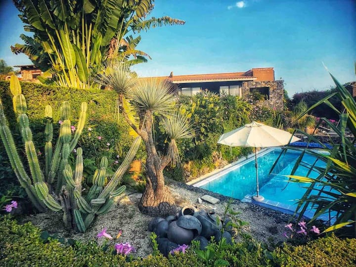Villa Alaia está situada entre el pueblo de Malinalco y el de Chalma. Está rodeada de montañas, con caminos para hacer bicicleta de montaña, senderismo etc.