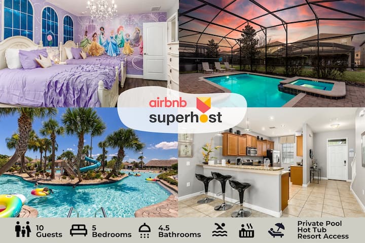 Villa de lujo de 5 dormitorios con piscina cerca de Disney y servicios del resort