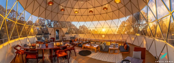 Inspirado en el vibrante Himalaya, este glamping tiene una cama tamaño king, un sofá cama y un baño privado, ofreciendo la escapada perfecta para tu grupo.