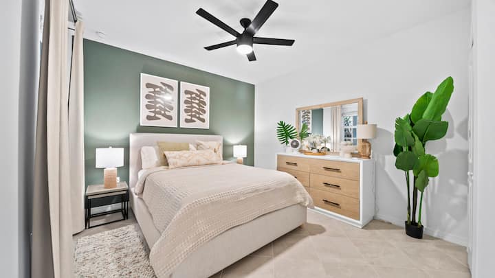 - Un acogedor dormitorio de invitados con una cama tamaño queen.