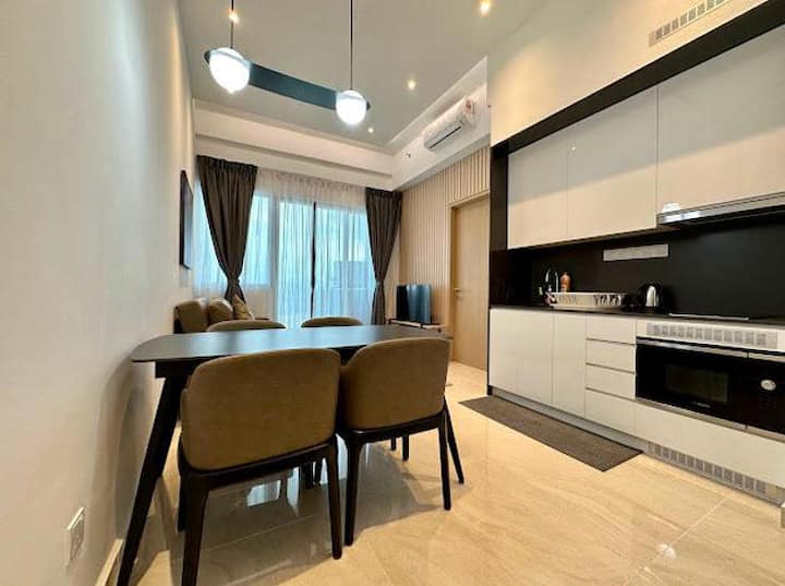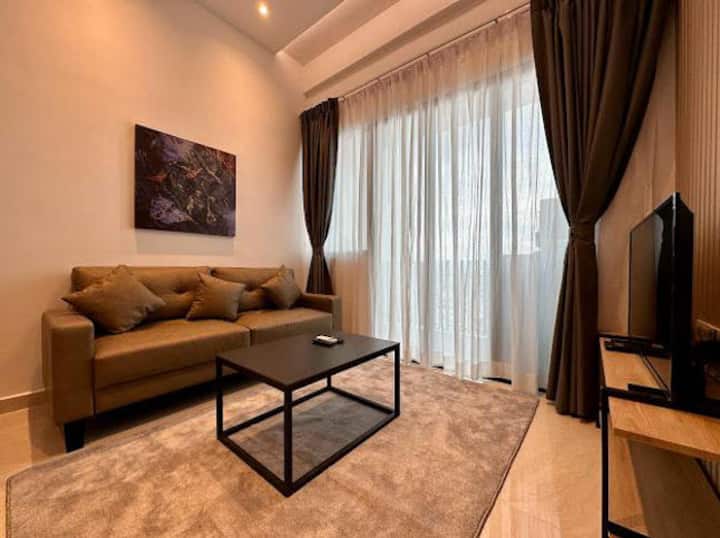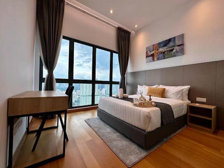 Amplia unidad de un dormitorio y las MEJORES vistas a la piscina del cielo: KLCC Twin Tower, KL Tower, Merdeka 118 Tower. A solo 5-10 minutos a pie de todas las principales atracciones y centros comerciales de la ciudad.