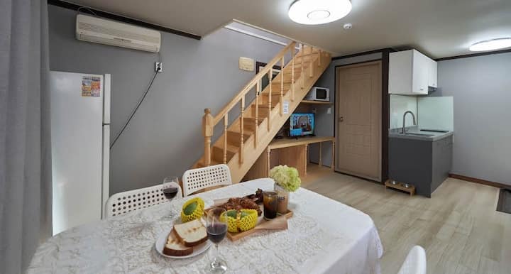 Prohibimos cocinar cerdo, pescado y cheonggukjang en la habitación para tener en cuenta a otros huéspedes debido al fuego y el olor, así que utiliza el lugar designado al aire libre y el área de barbacoa.