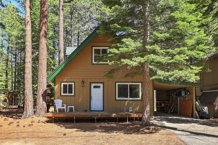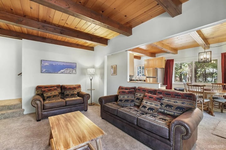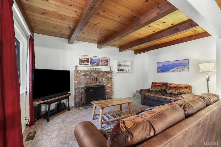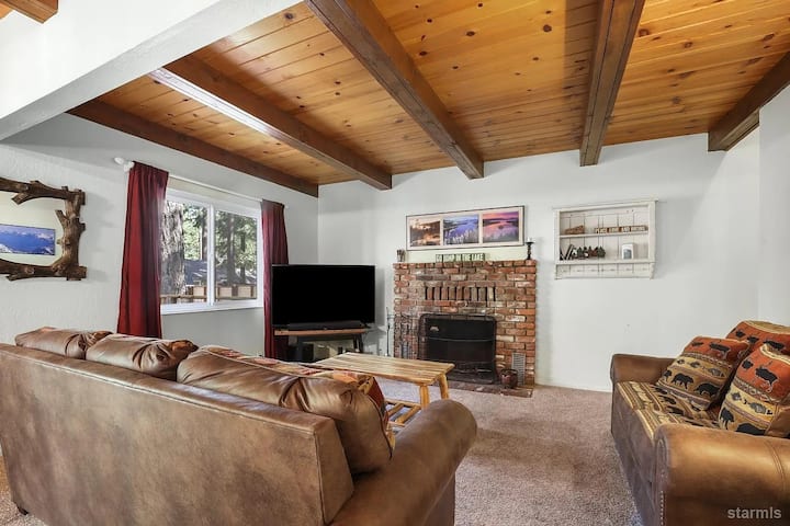Acogedor, totalmente amueblado, chalet de 2 plantas escondido en los serenos bosques de South Lake Tahoe. Este refugio de montaña combina el encanto alpino clásico con el confort moderno, lo que lo convierte en la escapada prolongada perfecta. El alojamiento cuenta con techos de madera rústica, vigas a la vista y detalles inspirados en la montaña. La cocina se abre a la zona del comedor y a una amplia terraza trasera, que incluye una bañera de hidromasaje privada bajo las estrellas. Sal y explora kilómetros de rutas de senderismo que comienzan a solo una manzana de tu puerta.