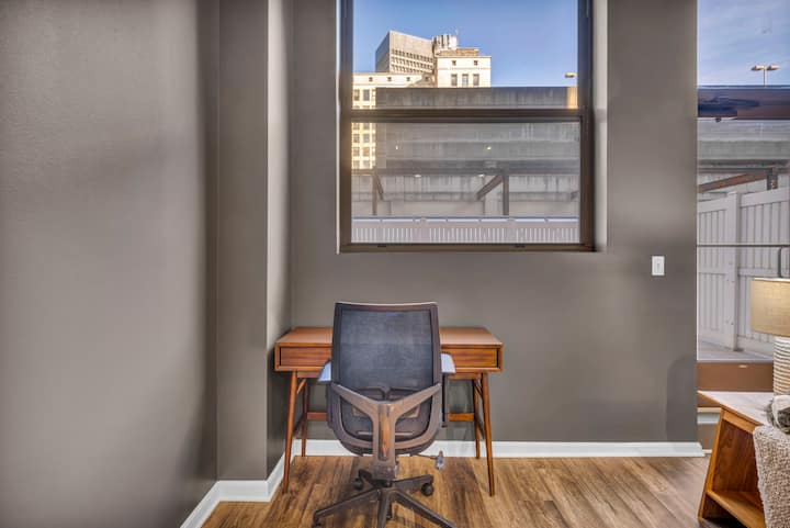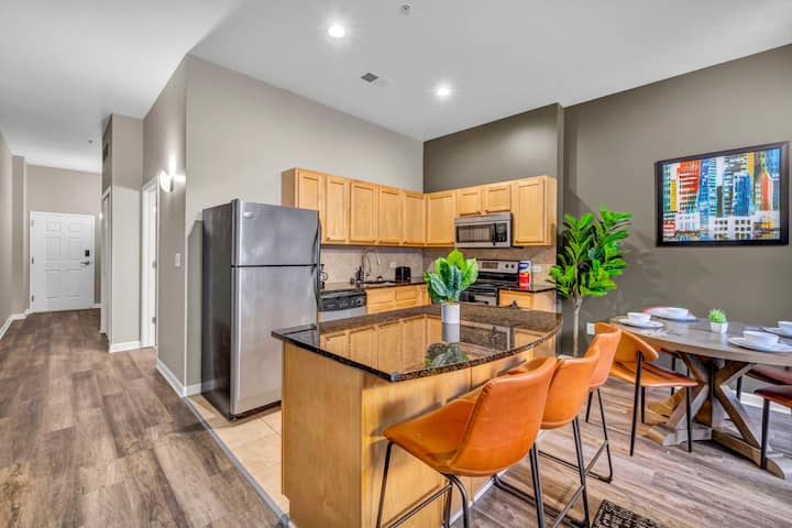 Alójate en una de las principales residencias de lujo de Cleveland, un apartamento diseñado para huéspedes que valoran la elegancia, la comodidad y la conveniencia. Con una puntuación de 96/100, estás a solo unos minutos de los mejores restaurantes, vida nocturna y atracciones de la ciudad, y luego puedes retirarte a tu oasis privado para relajarte con estilo.