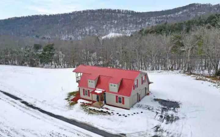 Tanto si quieres relajarte en las montañas de Virginia Occidental como si quieres pasar tiempo de calidad con tus seres queridos, este granero convertido en 3 dormitorios y 3 baños es el refugio perfecto. Tome un café en la terraza con vistas panorámicas, juegue al billar o al tejo, haga una barbacoa y reúnase alrededor de la chimenea. Disfruta de juegos al aire libre como las herraduras, el golf de escalera y el cornhole. Esta escapada aislada ofrece la mezcla ideal de aventura al aire libre y comodidad acogedora en el interior.