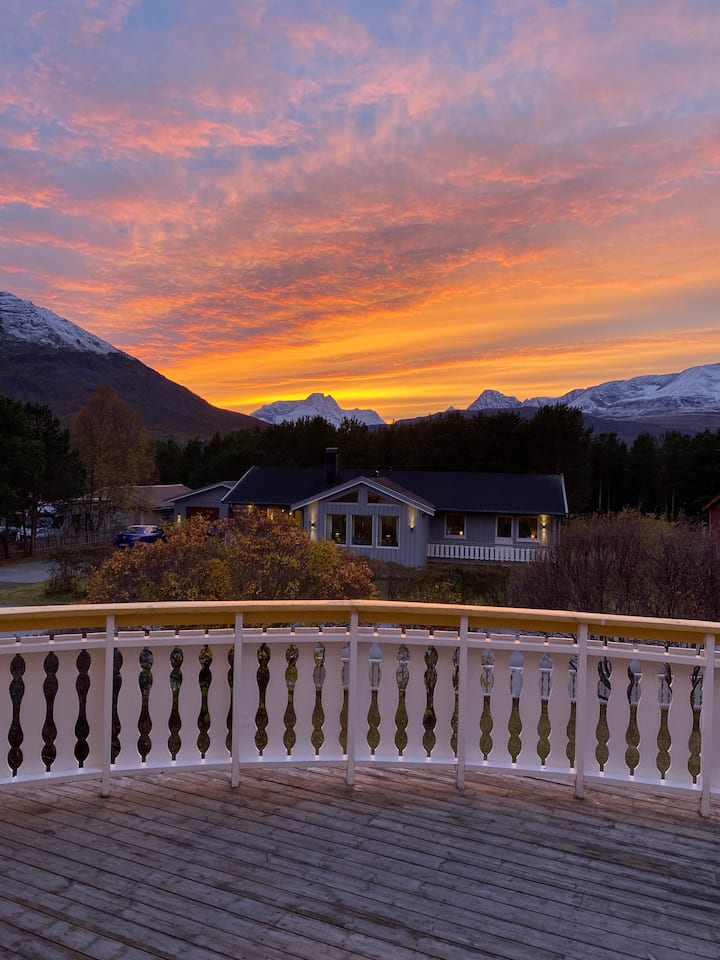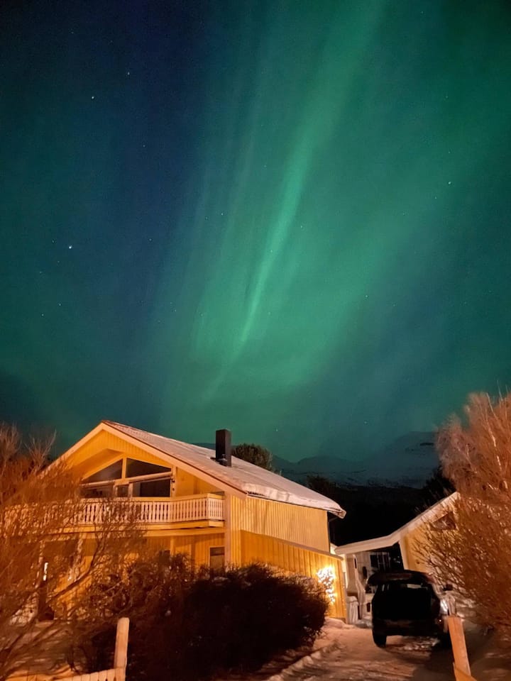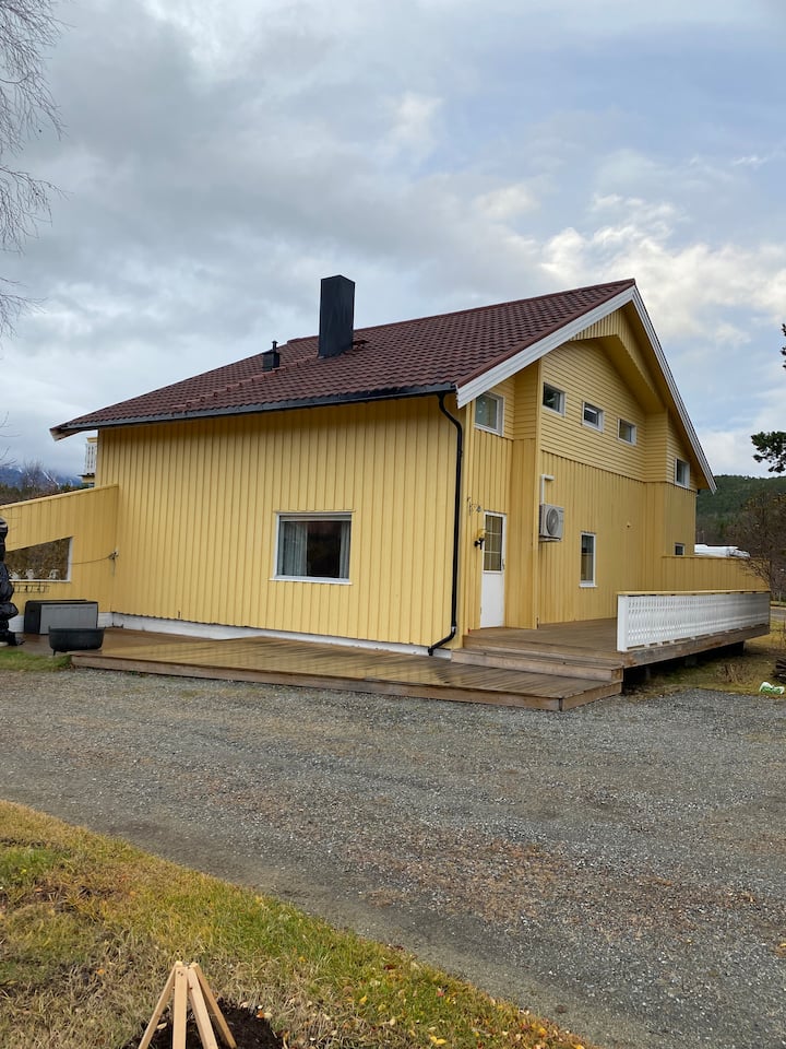 Nuestra villa amarilla cuenta con todo lo necesario. Si buscas un lugar con experiencias increíbles en la naturaleza y un ambiente relajante, este es el lugar. Si quieres experimentar las luces del norte, Skibotn es uno de los lugares con más días de clima despejado. También existe la posibilidad de pasear en trineo de perros y motos de nieve. Si te gusta el senderismo, hay muchas rutas de senderismo a pocos pasos, tanto en bosques, montañas como junto al mar.