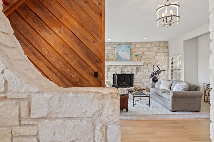 ¡Escápate a nuestro lujoso refugio 4BR junto al lago Travis! Esta espaciosa casa de 3600 pies cuadrados cuenta con impresionantes vistas al lago desde cada habitación. Disfruta de una piscina privada y un relajante jacuzzi durante todo el año. Ubicado en un acre aislado, encontrarás paz y privacidad, pero estarás cerca de la vibrante escena del centro de Austin. Explora bodegas y puertos deportivos para aventuras en el lago. Perfecto para grupos grandes, escapadas familiares, celebraciones o un acogedor retiro de invierno. ¡Crea recuerdos inolvidables en esta excepcional escapada al lago Travis!