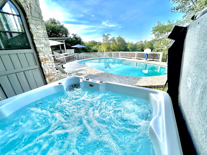 Diseñado pensando en grupos grandes, este alojamiento es perfecto para reuniones familiares, celebraciones especiales o retiros corporativos. Los amplios espacios interiores y exteriores permiten reuniones sin problemas, mientras que las características únicas de la propiedad, como el jacuzzi, la piscina y las impresionantes vistas, aseguran que tu estancia sea inolvidable. Ya sea que estés relajándote junto a la piscina, relajándote en el jacuzzi o explorando lo mejor de Austin y Hill Country, este refugio ofrece lo último en lujo y comodidad.