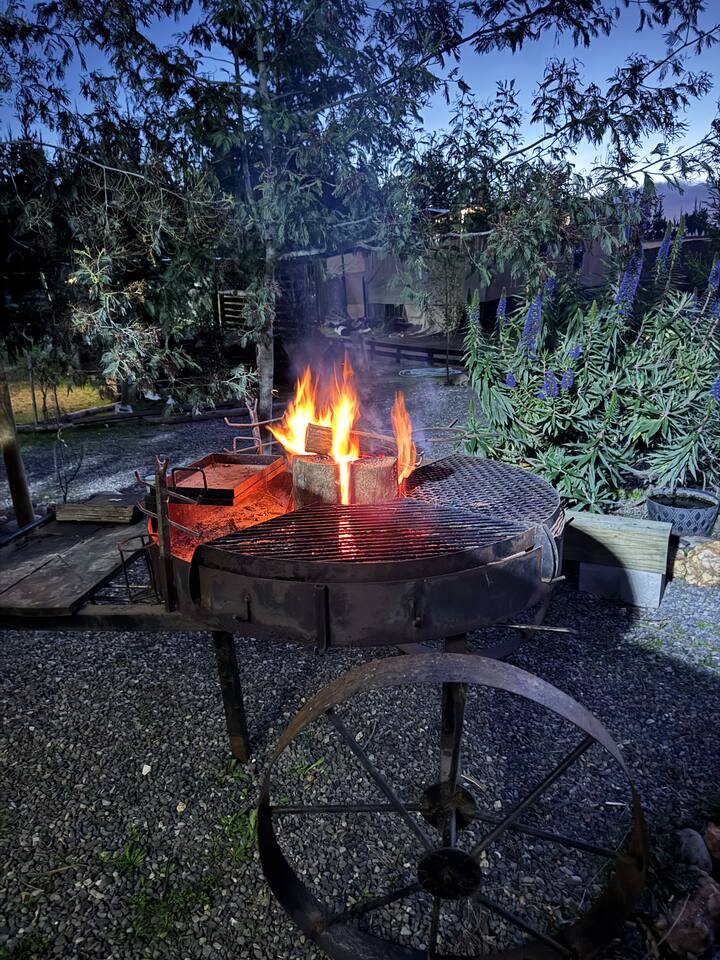 Cabaña en el bosque con tinaja