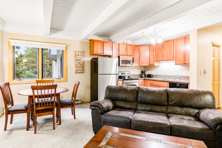 Excelente ubicación cerca del centro de Breck y de los telesillas de Peak 9. Acogedor apartamento de dos dormitorios/un baño en la zona de Columbine Road, cerca del telesilla Quicksilver. Lavadora/secadora en la unidad. Excelente ubicación; a poca distancia a pie del telesilla Quicksilver, la estación de Main Street o el centro de Breckenridge. Acceso a la Columbine Clubhouse con piscina climatizada al aire libre y 4 jacuzzis (abiertos en temporada).