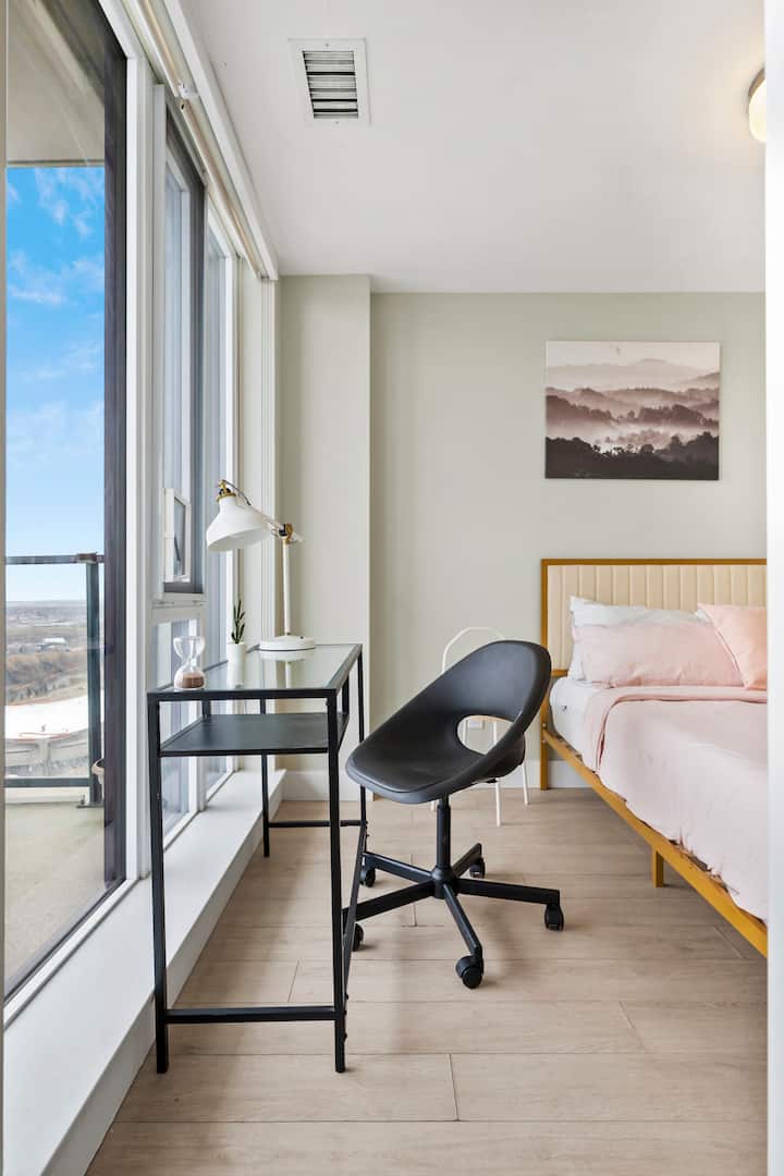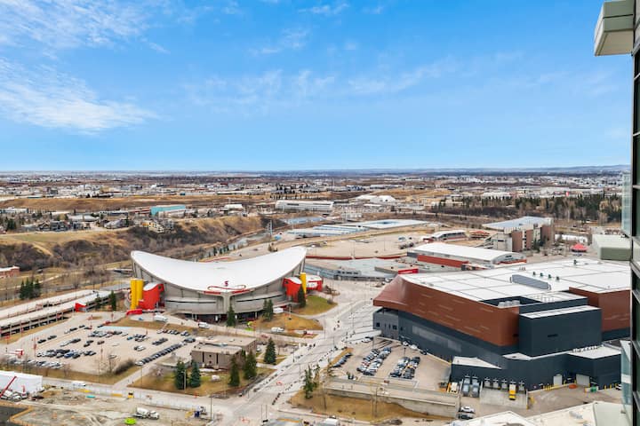Nuevo piso alto en Stampede con vistas increíbles