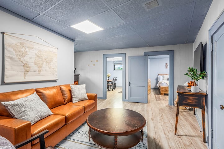 Experimenta el encanto de la región vinícola de Carolina del Norte desde este loft de dos dormitorios y un baño recién renovado en el corazón del centro de Elkin. Rediseñado cuidadosamente con muebles y decoración completamente nuevos, este espacioso refugio combina la comodidad moderna con un estilo cálido y acogedor. Perfecto para parejas, amigos o viajeros solitarios, el loft tiene capacidad para cuatro personas y ofrece una base ideal para explorar los viñedos locales, las rutas de senderismo y la vibrante escena del centro de la ciudad.