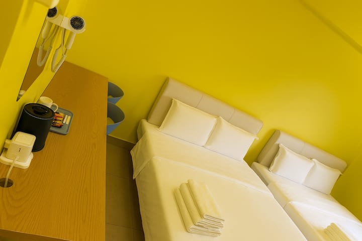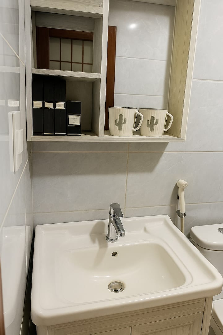 Cada habitación está totalmente equipada. En el momento del registro, ofrecemos café de bienvenida, 2 botellas de agua purificada, cepillo de dientes y pasta de dientes, y jabón (solo se proporciona el primer día). También hay champú y gel de ducha. Las habitaciones están equipadas con secador de pelo, hervidor eléctrico, aire acondicionado, lámpara de noche y puerto de carga USB. Los baños están equipados con calentadores de agua eléctricos. Todas las habitaciones tienen una cerradura de puerta inteligente con acceso con tarjeta, y la electricidad se activa insertando la tarjeta llave en la ranura.