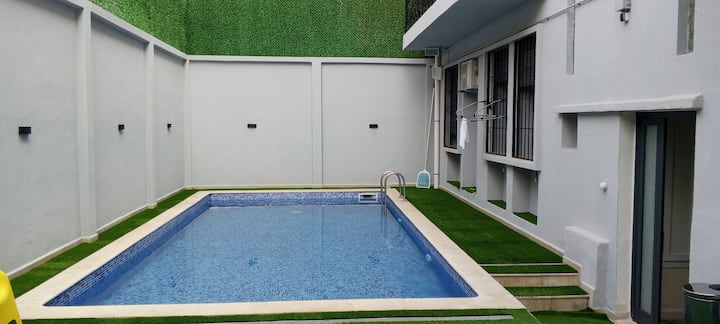 Este es uno de los pocos lugares en la zona con piscina.