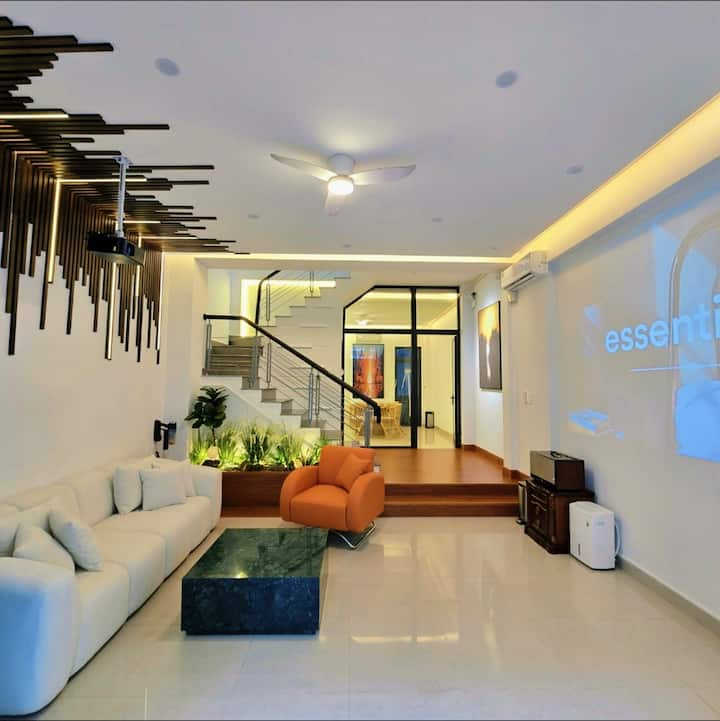 - Hay un gran proyector de haz en la sala de estar y audio con conexión Bluetooth. (Canto disponible)