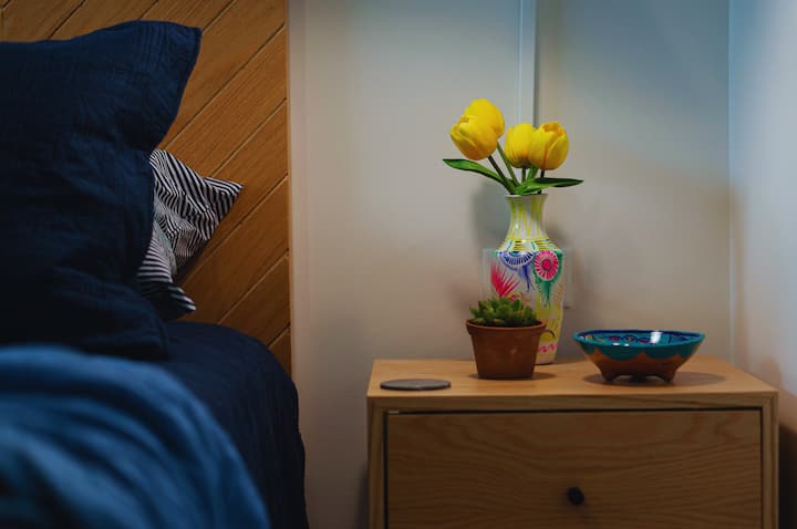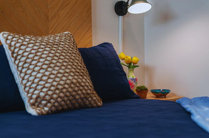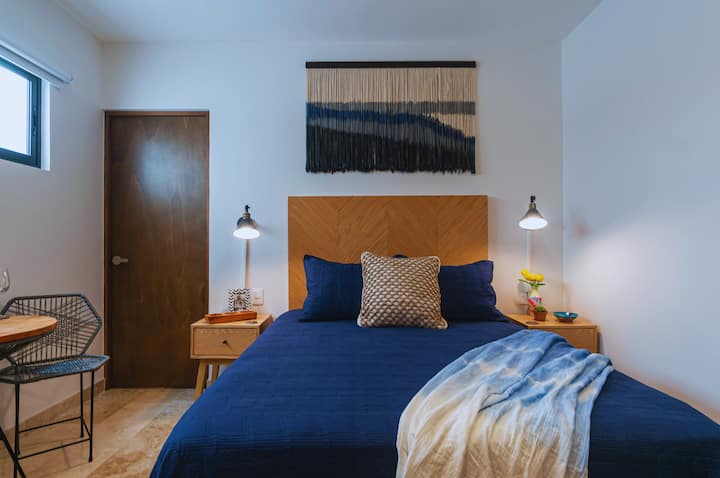 Disfrute de una vida de lujo con pisos de mármol y travertino y un estilo contemporáneo. Al entrar en el condominio, que está muy bien amueblado, suba en ascensor hasta su oasis privado. En el interior, encontrará una minicocina con refrigerador y microondas, un televisor inteligente con Netflix y Amazon Prime, y una cama queen con sábanas de percal de alta calidad. El baño cuenta con impresionantes azulejos azules y paredes de travertino, y está delimitado por una puerta de vidrio en la ducha, ideal para parejas.