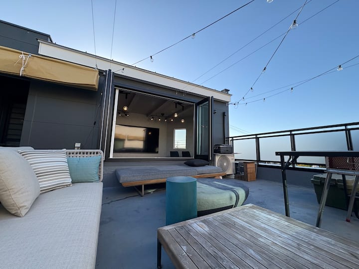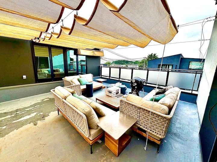 Al atardecer, puedes ver la puesta de sol en un espacio privado en la azotea y luego relajarte en el baño relajante para aliviar tu fatiga.