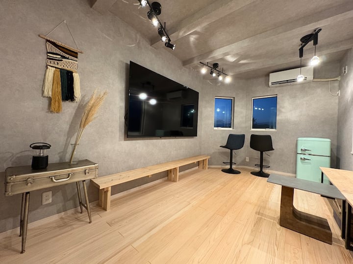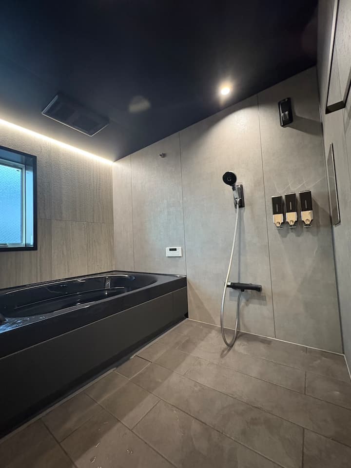 Tsubame es una posada de nueva construcción que acaba de completarse en octubre de 2025.Todas las habitaciones tienen aire acondicionado.Puedes disfrutar de un cine en casa de 100 pulgadas en la 1.ª planta, una habitación de estilo japonés y un amplio baño en la 2.ª planta, y una sala de estar con un televisor de 85 pulgadas en la 3.ª planta, y una terraza al aire libre de unos 20 tatamis y una cocina.