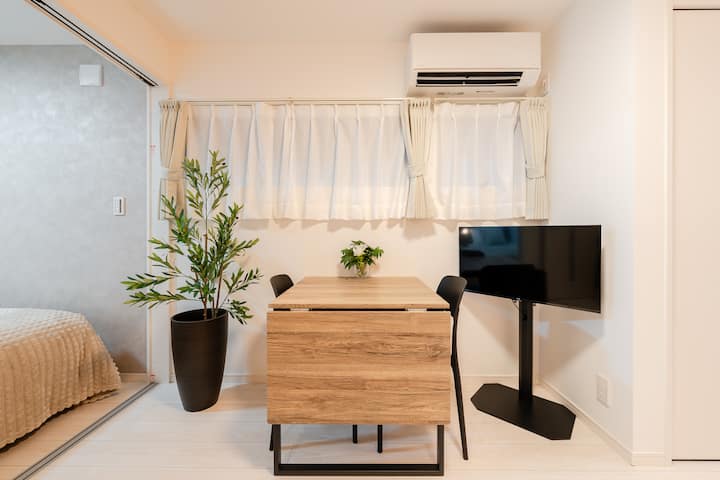 [Nueva construcción] A 1 estación y 2 minutos de Shibuya, a 8 minutos a pie de la estación de Ikejiri Ohashi / 2 individuales (1 king) + 1 queen / 4 personas / 30 m²