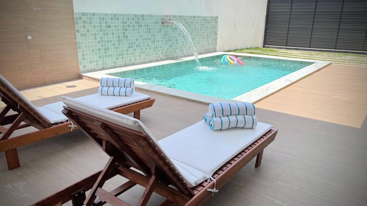 Este es uno de los pocos lugares en la zona con piscina.