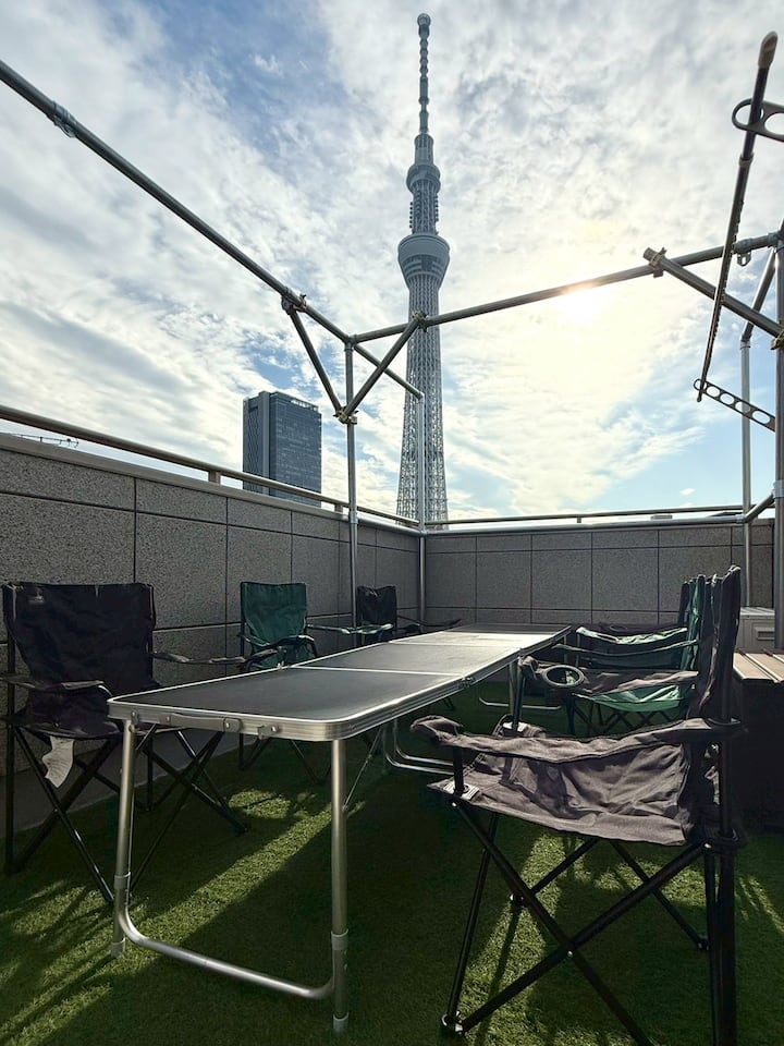Nuevo anuncio| Área de Asakusa muy popular| Casa unifamiliar| A 5 minutos a pie de la estación de Oshiage| Vista del rascacielos desde la azotea| Capacidad máxima de 13 personas