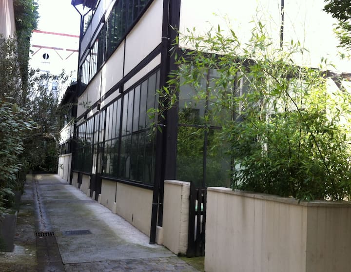 Ubicado en un tranquilo carril privado en el distrito 18 de París, este tranquilo loft se abre a un patio privado al aire libre a través de grandes ventanales, dentro de una pequeña propiedad de copropiedad. El alojamiento incluye una sala de estar de 35 m² con una cocina abierta que conduce a la terraza del patio de 20 m², 3 dormitorios (2 dormitorios para adultos con camas dobles y 1 dormitorio para niños con dos camas individuales), una sala de oficina separada, un baño y un inodoro separado. Ideal para una o dos parejas con niños.