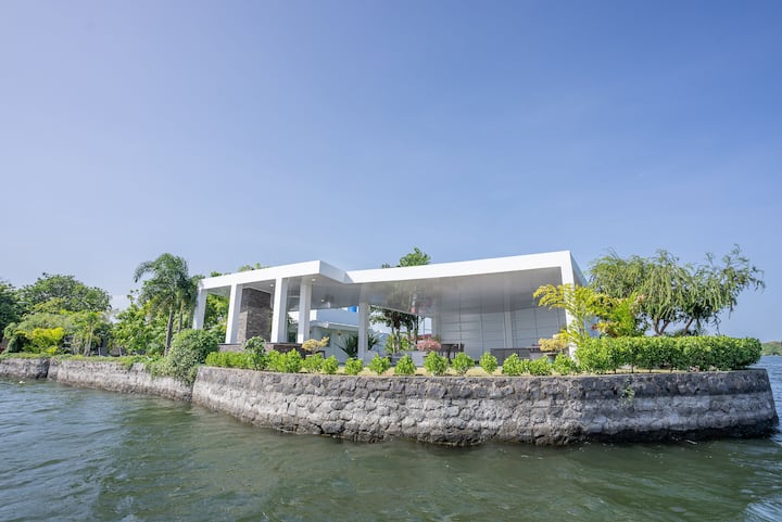 Isla privada con piscina y vista al volcán