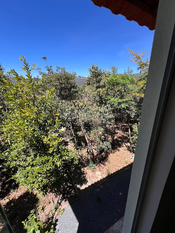 Con vista a la montaña y al jardín
