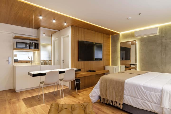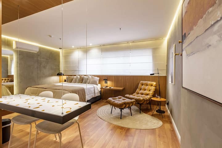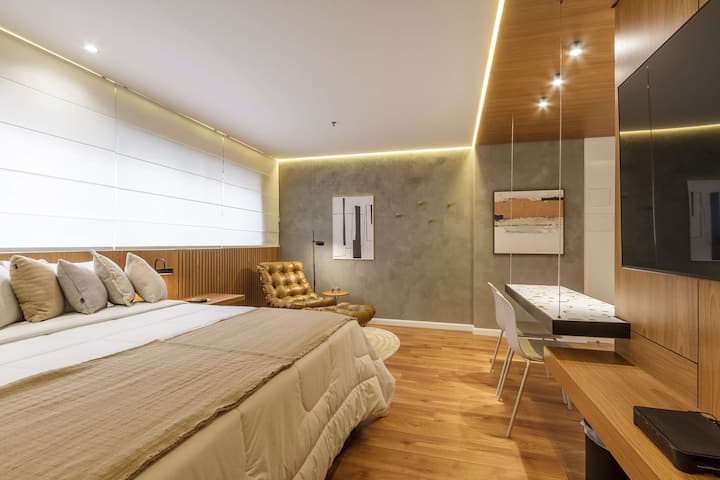 Bem-vinde à Cyclinn! Nos apasionan los viajes y dedicamos nuestros esfuerzos a ofrecer experiencias increíbles. ¿Necesitas un lugar cerca de un evento, trabajo o restaurante favorito? ¡Tenemos! Nuestras unidades están decoradas de forma única, modernas y bien ubicadas, con Wi-Fi, TV de 65 pulgadas, ropa de cama de primera calidad, piscina, gimnasio y mucho más. Ya sea por trabajo o por placer, ¡tenemos el espacio perfecto para que tu estancia sea inolvidable!