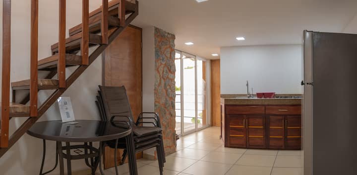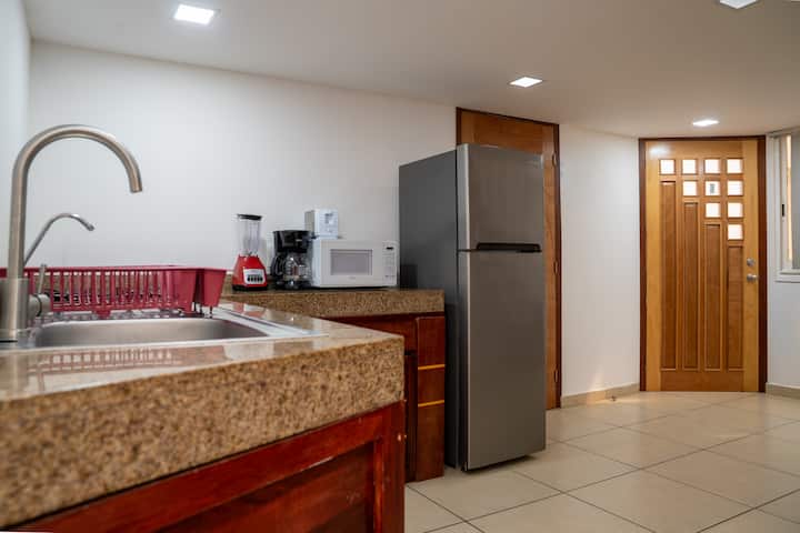 Me dedico a: Todos nuestros condominios cuentan con cocina equipada con lo indispensable para preparar sus alimentos, evitando en estos dias de pandemia tener que ir todos los días a un restaurante (reduciendo costos y riesgos innecesarios)