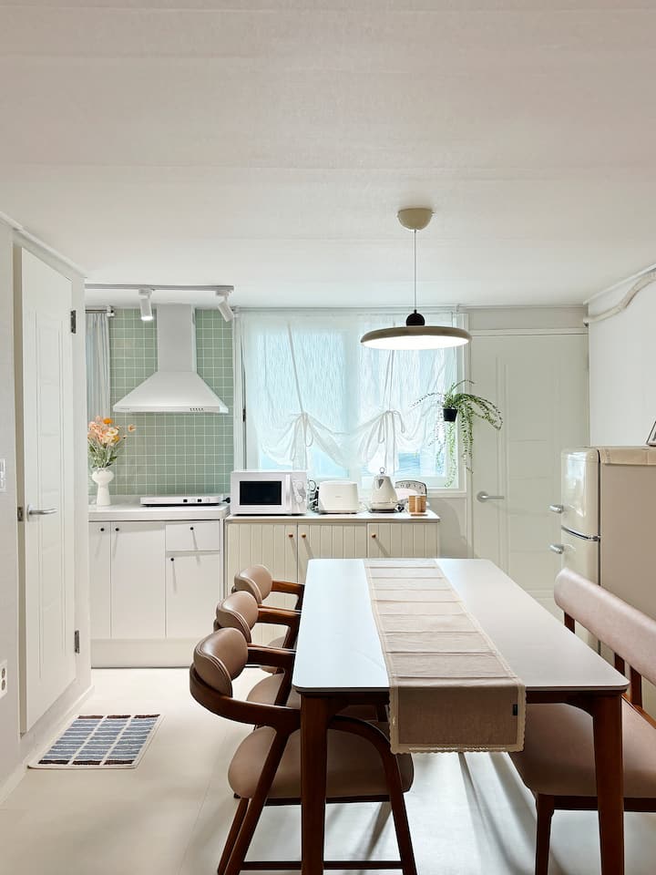 La Casa Oliva es un alojamiento recién inaugurado que cuenta con una ubicación óptima a 1 minuto de la estación de Gongdeok. Si tomas el tren del aeropuerto desde el aeropuerto de Incheon, puedes llegar a la estación de Hwangdeok sin un traslado y llegar al alojamiento en solo 1 minuto desde la salida de la estación. La estación de la Universidad de Hongik y la estación de Seúl están a solo una parada, por lo que es conveniente moverse, y es el centro de transporte que está directamente conectado a las principales atracciones turísticas como Dongdaemun, Itaewon y Jongno en metro.