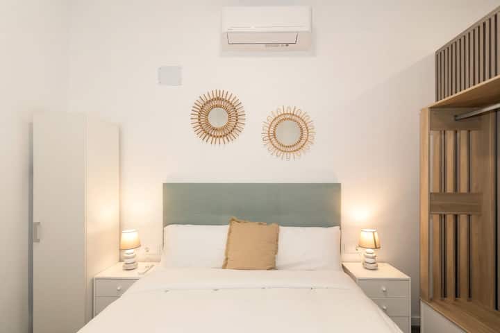 Este sencillo estudio cuenta con una cama doble y sofa cama es un punto de partida ideal para explorar la ciudad. Se encuentra en la planta baja, a pie de calle, tiene capacidad para 2 personas cómodamente y puede alojar hasta 4 con el sofá cama del salón (el dormitorio está separado del salón mediante unos paneles, pero no cuenta con puerta).