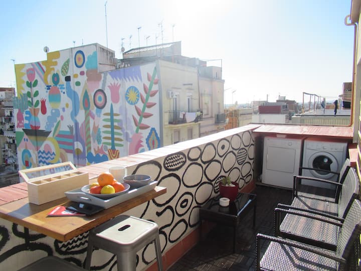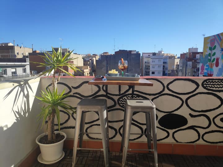 Camp Nou. Wifi.Atico con Terraza a 3 min del metro