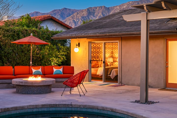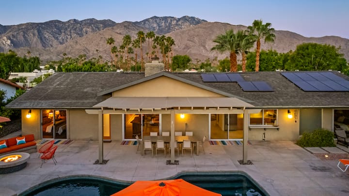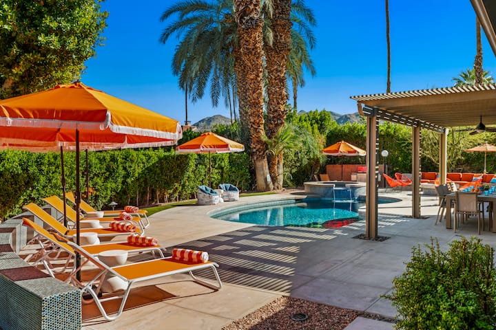 El Orange Cactus ofrece impresionantes vistas a la montaña y un patio trasero privado de estilo resort. Relájate en la gran piscina con spa integrado y reúnete alrededor del fogón. Rodeado de palmeras, es el mejor refugio en el desierto para disfrutar de días soleados y noches estrelladas.