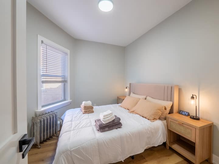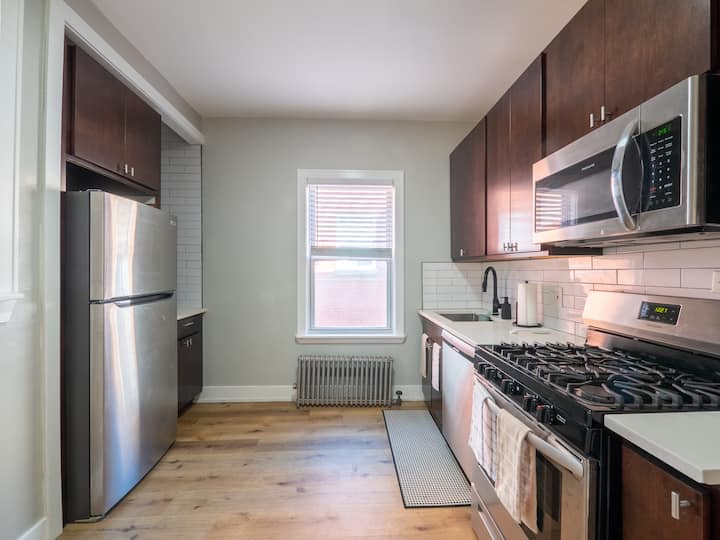Ambiente soleado y acogedor en Rogers Park, a pocos pasos de la Universidad de Loyola, Loyola Beach y la artística avenida Glenwood. Toma un café en Charmers, visita el mercado de Morse para tomar un refrigerio, ve a un espectáculo o relájate en The Glenwood Bar. Estás a un paso de la línea roja de Morse + Metra, con playas, bocados, arte y eventos por todas partes. Es la combinación perfecta de relajación, cultura y energía de “podría vivir aquí”.