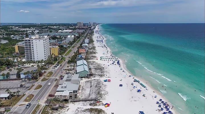 Escápate a Chateau La Mer II 804 – Blue Ocean Getaway, tu refugio costero perfecto a pocos pasos de las aguas verde esmeralda y las arenas blancas como el azúcar del Golfo. Este encantador apartamento de 2 dormitorios y 2 baños ofrece todas las comodidades del hogar, incluida una conveniente lavadora y secadora en la unidad. Toma tu café de la mañana en el balcón privado, donde las brisas tranquilas marcan el tono para un día de playa perfecto. En el interior, el dormitorio principal cuenta con una acogedora cama tamaño king, mientras que la habitación de invitados está equipada con una litera doble y una litera doble tamaño queen, ideal para familias. El sofá cama tamaño queen de la sala de estar ofrece aún más flexibilidad, con capacidad para 6 personas. La cocina bien equipada hace que sea fácil preparar tus comidas favoritas, ya sea que estés preparando un desayuno rápido antes de ir a la arena o una cena relajada después de un día de diversión bajo el sol. Cuando estés listo para explorar, los favoritos locales como Pompano Joe's y Captain Dave's están a solo minutos de distancia para disfrutar de los mariscos más frescos del Golfo. Después de un día de aventuras en la playa, relájate en tu balcón con una bebida refrescante y disfruta del resplandor de la noche costera. Blue Ocean Getaway es tu hogar lejos de casa, listo para ayudarte a crear recuerdos que durarán toda la vida.