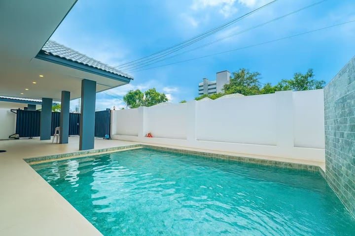 Villa de 4 dormitorios, 2 salas y 5 baños con piscina cerca de la playa de Jomtien en Pattaya. La mejor opción para vacaciones y reuniones.