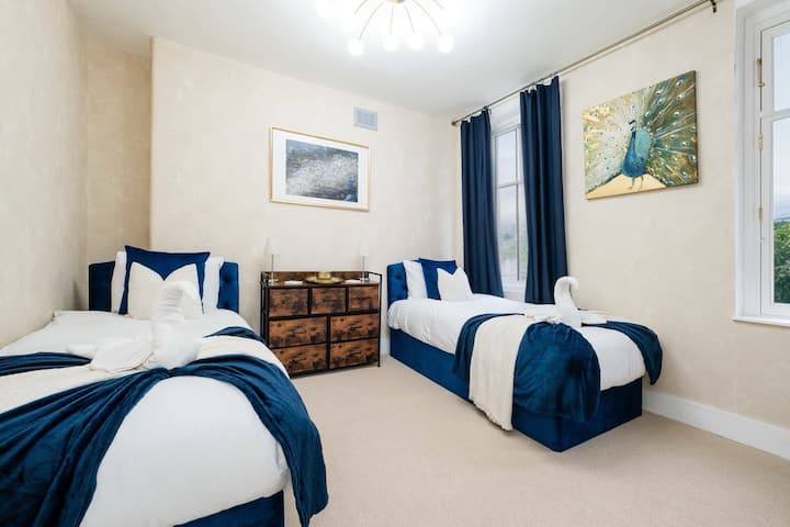 Entra en un santuario tranquilo donde las mañanas comienzan con una suave luz que se derrama a través de elegantes ventanas georgianas con vistas a la calma de los jardines Brown Hart. Sumérgete en una lujosa cama doble del Reino Unido vestida con ricos azules de terciopelo, o relájate en el sofá cama verde oscuro, perfecto para un momento tranquilo con un libro o una película nocturna en el televisor inteligente.