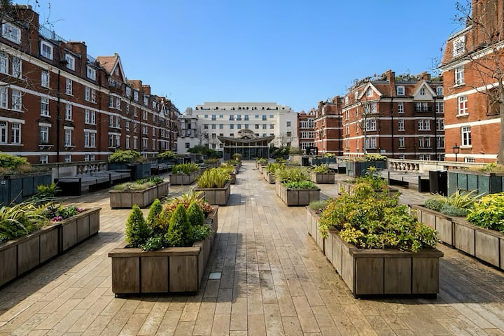 Despiértate con la calma de Brown Hart Gardens en un acogedor escondite de Mayfair a pocos minutos de Oxford Street, junto a Selfridges y a poca distancia a pie de Hyde Park. Este elegante departamento de 2 dormitorios combina comodidad con encanto: iluminación suave, camas lujosas y un ambiente cálido y acogedor. Un refugio tranquilo en el barrio más emblemático de Londres, perfecto para compradores, exploradores y familias.