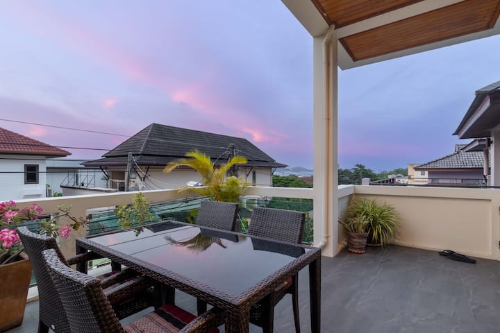 Disfruta de una escapada tranquila a Phuket en este acogedor apartamento de 1 dormitorio, perfecto para parejas, viajeros solitarios o familias pequeñas. Disfruta de impresionantes vistas al mar, a la montaña y al Gran Buda desde tu balcón privado.
