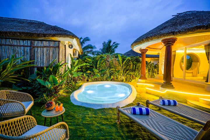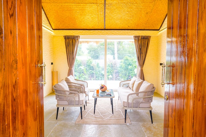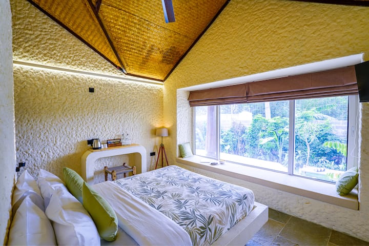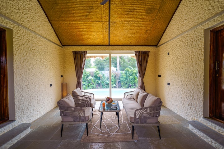 Esta villa Mahabalipuram inspirada en Bali ofrece una escapada de 2BHK rodeada de palmeras, vegetación y calma tropical. Cada habitación se abre a una pequeña piscina privada, creando un refugio tranquilo perfecto para mañanas lentas. Interiores cálidos, baños tipo spa y exuberantes espacios al aire libre combinan lujo con naturaleza. Con sitios de la UNESCO cerca, esta villa que admite mascotas ofrece relajación, cultura y una vida íntima y sin esfuerzo. Ideal para parejas, familias o estancias largas y sin prisas, te permite reconectar profundamente con el paisaje.