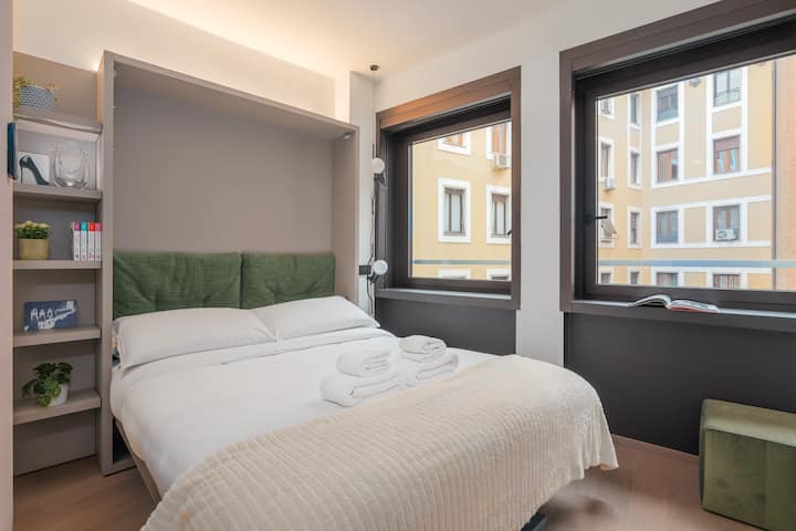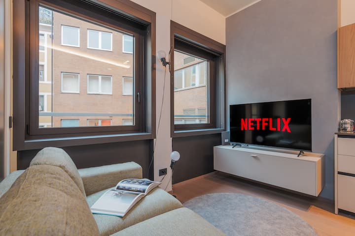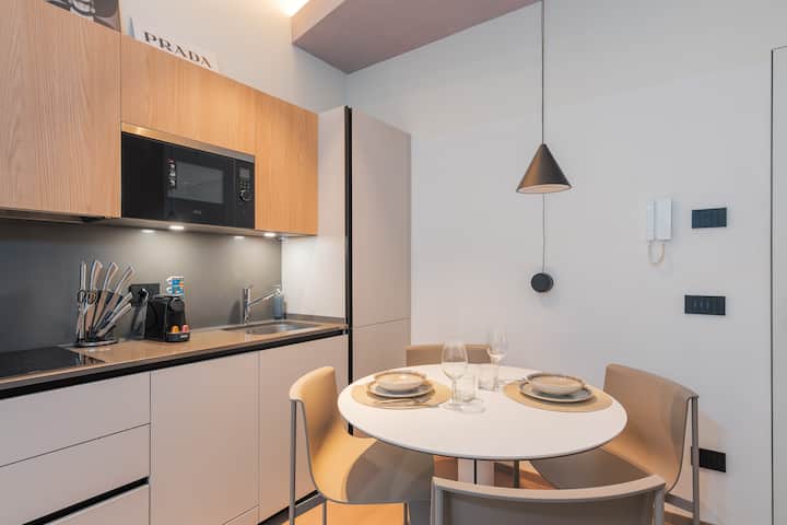 Alójate a solo un minuto del Duomo en este elegante y moderno apartamento, perfecto para parejas, exploradores solitarios o viajeros de negocios. Disfruta de una mezcla de elegancia y comodidad en el corazón de Milán.