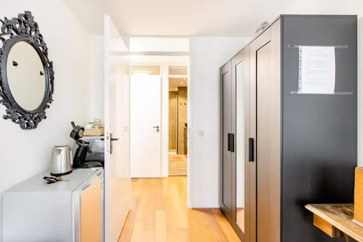Cafés, panaderías, restaurantes, supermercados y transporte público están a pocos minutos a pie. Los huéspedes a menudo me dicen que la ubicación es “el equilibrio perfecto entre tranquilidad y céntrica”, y no podría estar más de acuerdo.
