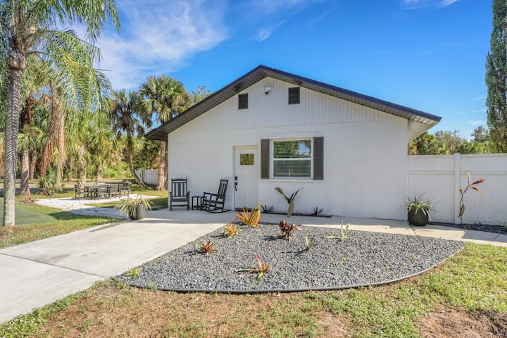 ¡Relájate y juega pickleball en nuestra cancha compartida! Disfruta de una moderna casa de huéspedes de 2 dormitorios y 1 baño con una cocina totalmente equipada en una tranquila propiedad de 5 acres a solo 14 millas de la playa. Los huéspedes tienen acceso a un área designada de los terrenos. Apto para perros y perfecto para una escapada tranquila. Estacionamiento adicional para barcos o vehículos recreativos disponible con la aprobación del propietario. Tarifas por lo siguiente: check-in anticipado, check-out después de la hora establecida, mascotas. Se requiere depósito por daños. Se necesita permiso para eventos. Casa ubicada al final de 1 milla de camino de grava.