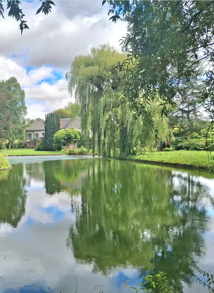 Casa con río y pequeño estanque