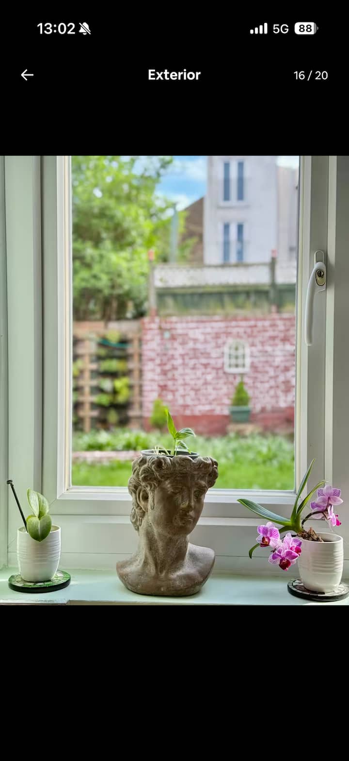 Bonita habitación doble con jardín