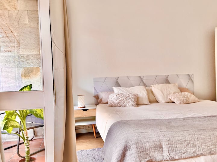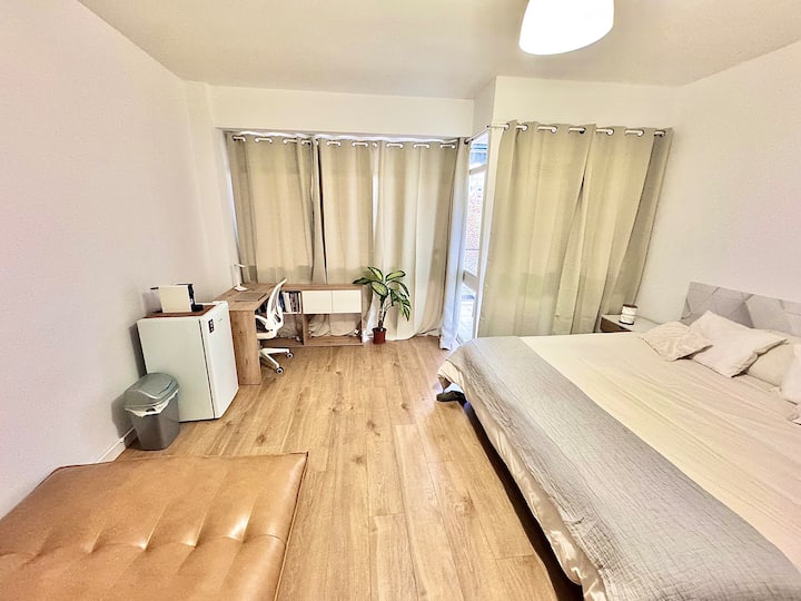 Amplia habitación con balcón.
