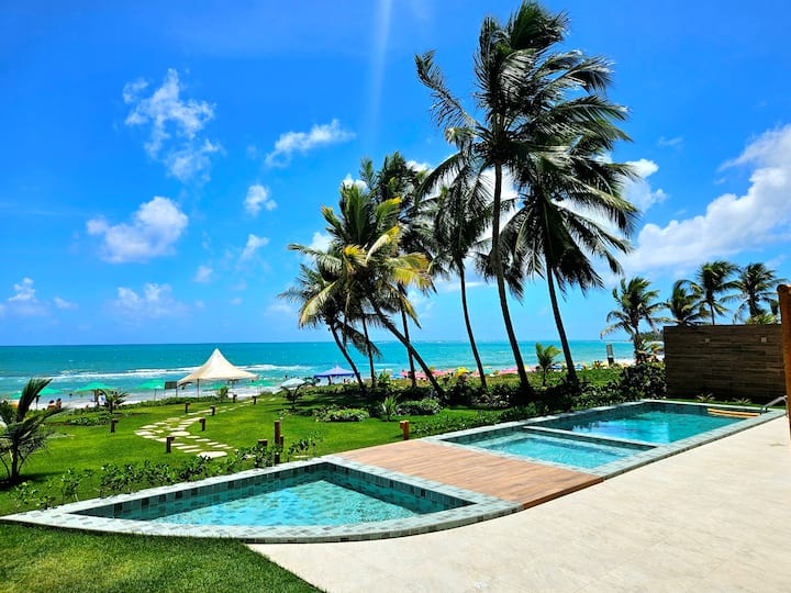 Pé na Areia, piscina y vista al mar en Carneiros